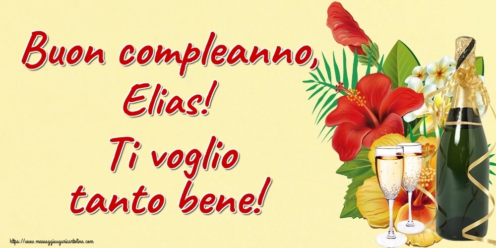 Buon compleanno, Elias! Ti voglio tanto bene! | Cartolina con champagne e fiori per una donna speciale | Cartoline di auguri