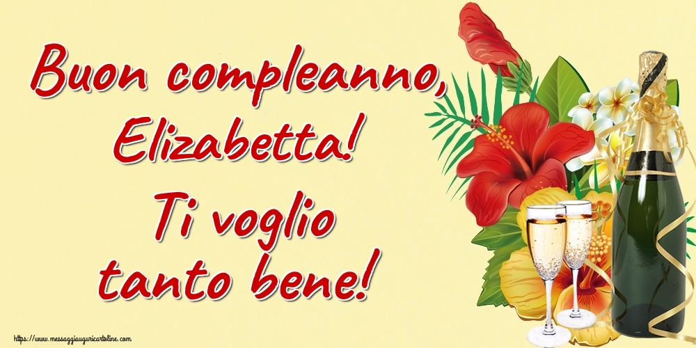 Buon compleanno, Elizabetta! Ti voglio tanto bene! | Cartolina con champagne e fiori per una donna speciale | Cartoline di auguri