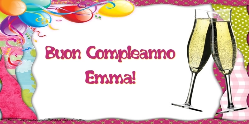 Con questa cartolina con champagne e palloncini, riuscirai a portare una gioia immensa al festeggiato nel giorno del suo compleanno. È un gesto piccolo, ma pieno d'affetto, che rimarrà per sempre nella sua memoria. Il nome Emma è il fulcro di questo biglietto, inciso con eleganza e raffinatezza per far sentire davvero speciale il festeggiato nel giorno del suo compleanno. Questo biglietto di auguri di compleanno con il nome Emma può essere scaricata gratis o inviare tramite Whatsapp, Facebook, Twitter, Pinterest. Immagine di buon compleanno con champagne e palloncini e dimensioni 800px x 400px.