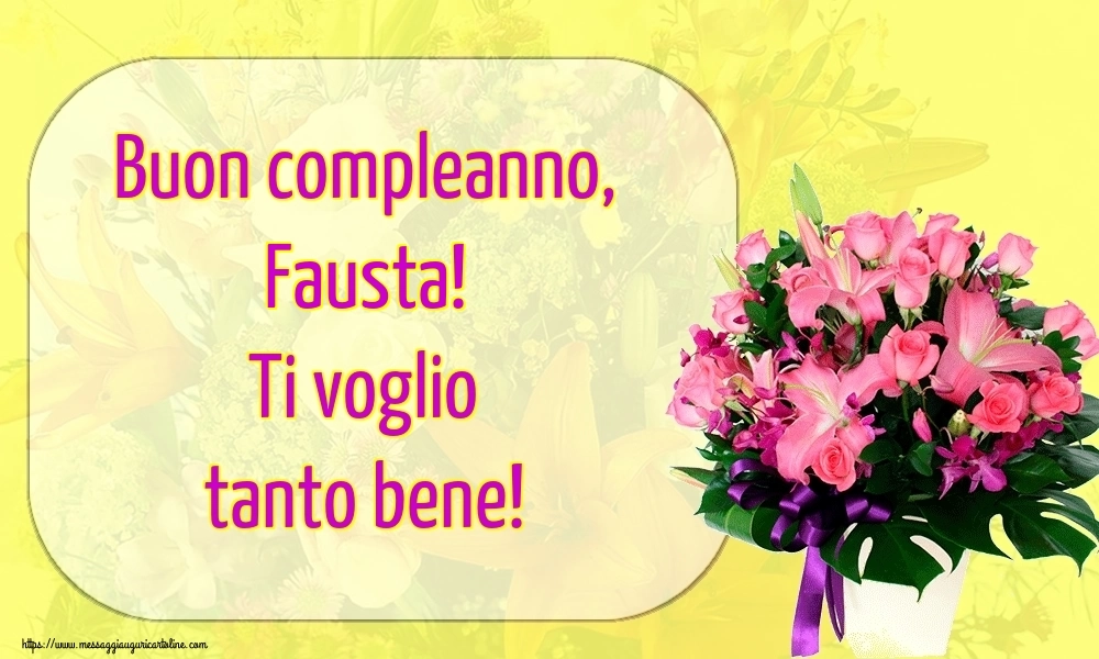 Questa cartolina d'auguri personalizzato con fiori rosa in vaso è decorato con un design festivo e pieno di colore, perfetto per riflettere la gioia e l'allegria di un compleanno. Il nome del destinatario, Fausta, è il fulcro di questo biglietto, inciso con eleganza e raffinatezza per farlo sentire davvero speciale nel giorno del suo compleanno. Questo biglietto di auguri con il nome Fausta può essere scaricata gratis o inviare tramite Whatsapp, Facebook, Twitter, Pinterest. Immagine di auguri buon compleanno con fiori rosa in vaso e dimensioni 1000px x 600px.