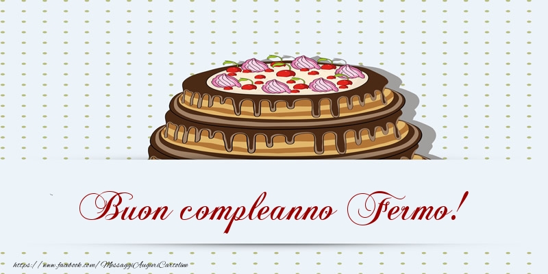Buon compleanno Fermo! | Cartolina con disegno della torta | Cartoline di compleanno