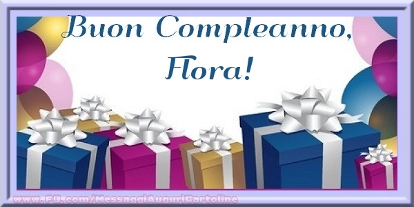 Con questa cartolina con regali su sfondo bianco, riuscirai a portare una gioia immensa al festeggiato nel giorno del suo compleanno. È un gesto piccolo, ma pieno d'affetto, che rimarrà per sempre nella sua memoria. Il nome Flora è il fulcro di questo biglietto, inciso con eleganza e raffinatezza per far sentire davvero speciale il festeggiato nel giorno del suo compleanno. Questo biglietto di auguri di compleanno con il nome Flora può essere scaricata gratis o inviare tramite Whatsapp, Facebook, Twitter, Pinterest. Immagine di buon compleanno con regali su sfondo bianco e dimensioni 600px x 300px.