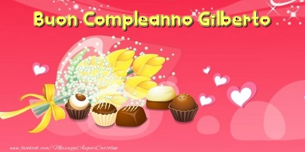 Con questa cartolina con fiori e cioccolatini, riuscirai a portare una gioia immensa al festeggiato nel giorno del suo compleanno. È un gesto piccolo, ma pieno d'affetto, che rimarrà per sempre nella sua memoria. Il nome Gilberto è il fulcro di questo biglietto, inciso con eleganza e raffinatezza per far sentire davvero speciale il festeggiato nel giorno del suo compleanno. Questo biglietto di auguri di compleanno con il nome Gilberto può essere scaricata gratis o inviare tramite Whatsapp, Facebook, Twitter, Pinterest. Immagine di buon compleanno con fiori e cioccolatini e dimensioni 600px x 300px.
