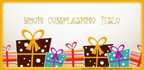 Con questa cartolina con regali, riuscirai a portare una gioia immensa al festeggiato nel giorno del suo compleanno. È un gesto piccolo, ma pieno d'affetto, che rimarrà per sempre nella sua memoria. Il nome Italo è il fulcro di questo biglietto, inciso con eleganza e raffinatezza per far sentire davvero speciale il festeggiato nel giorno del suo compleanno. Questo biglietto di auguri di compleanno con il nome Italo può essere scaricata gratis o inviare tramite Whatsapp, Facebook, Twitter, Pinterest. Immagine di buon compleanno con regali e dimensioni 600px x 293px.
