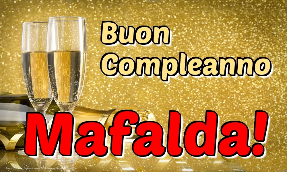 Con questa cartolina con champagne, bicchieri e coriandoli, riuscirai a portare una gioia immensa al festeggiato nel giorno del suo compleanno. È un gesto piccolo, ma pieno d'affetto, che rimarrà per sempre nella sua memoria. Il nome Mafalda è il fulcro di questo biglietto, inciso con eleganza e raffinatezza per far sentire davvero speciale il festeggiato nel giorno del suo compleanno. Questo biglietto di auguri di compleanno con il nome Mafalda può essere scaricata gratis o inviare tramite Whatsapp, Facebook, Twitter, Pinterest. Immagine di buon compleanno con champagne, bicchieri e coriandoli e dimensioni 1000px x 600px.