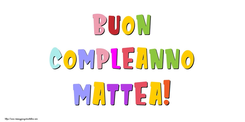 Buon compleanno Mattea! | Cartolina con messaggio scritto in lettere colorate | Cartoline di compleanno