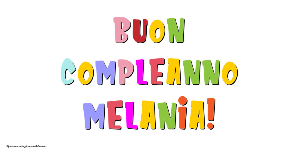 Buon compleanno Melania! | Cartolina con messaggio scritto in lettere colorate | Cartoline di compleanno
