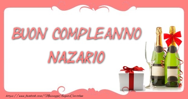 Buon compleanno Nazario | Cartolina con champagne e regali | Cartoline di compleanno