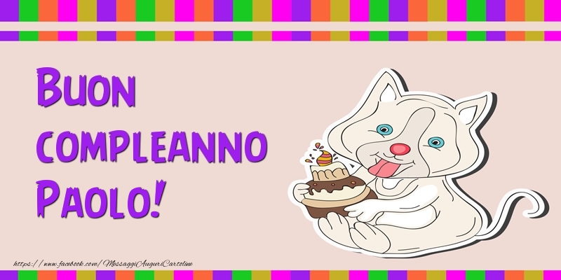Buon compleanno Paolo! | Cartolina con gatto con torta | Cartoline di compleanno