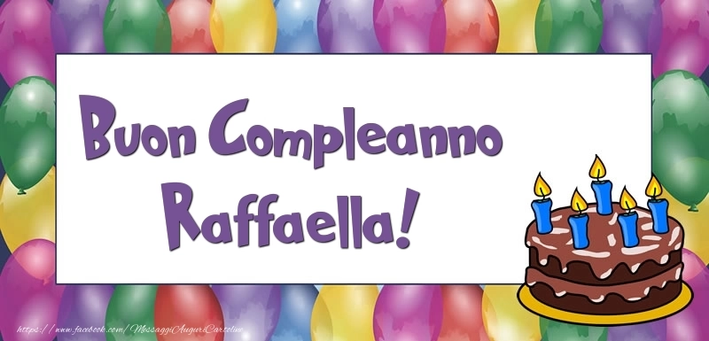 Buon Compleanno Raffaella | Cartolina con palloncini e torta | Cartoline di compleanno