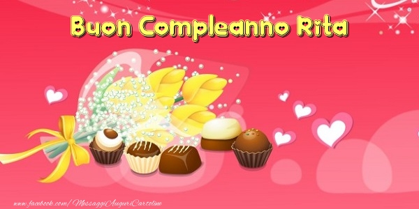 Buon Compleanno Rita | Cartolina con fiori e cioccolatini | Cartoline di compleanno