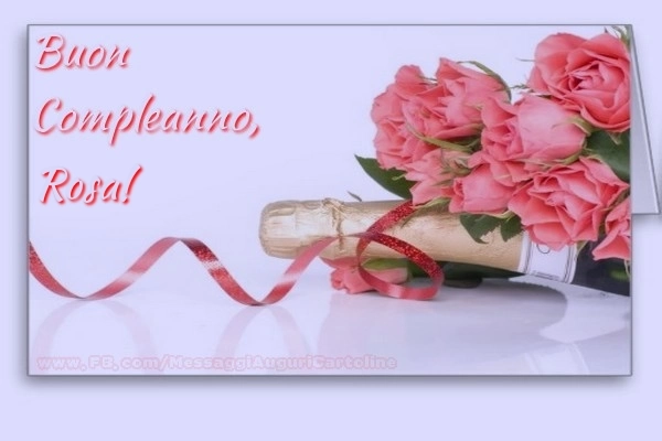 Con questa cartolina con bottiglia di champagne e rose, riuscirai a portare una gioia immensa al festeggiato nel giorno del suo compleanno. È un gesto piccolo, ma pieno d'affetto, che rimarrà per sempre nella sua memoria. Il nome Rosa è il fulcro di questo biglietto, inciso con eleganza e raffinatezza per far sentire davvero speciale il festeggiato nel giorno del suo compleanno. Questo biglietto di auguri di compleanno con il nome Rosa può essere scaricata gratis o inviare tramite Whatsapp, Facebook, Twitter, Pinterest. Immagine di buon compleanno con bottiglia di champagne e rose e dimensioni 600px x 400px.