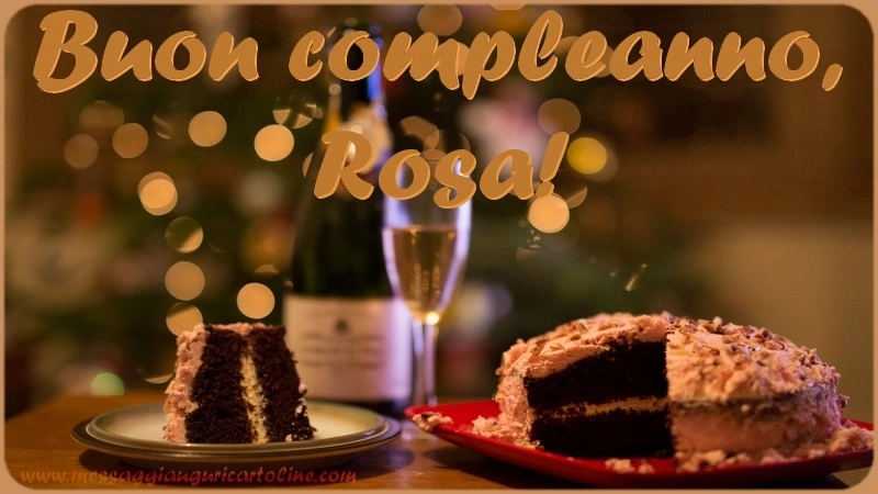 Con questa cartolina con torta al cioccolato e champagne, riuscirai a portare una gioia immensa al festeggiato nel giorno del suo compleanno. È un gesto piccolo, ma pieno d'affetto, che rimarrà per sempre nella sua memoria. Il nome Rosa è il fulcro di questo biglietto, inciso con eleganza e raffinatezza per far sentire davvero speciale il festeggiato nel giorno del suo compleanno. Questo biglietto di auguri di compleanno con il nome Rosa può essere scaricata gratis o inviare tramite Whatsapp, Facebook, Twitter, Pinterest. Immagine di buon compleanno con torta al cioccolato e champagne e dimensioni 800px x 450px.