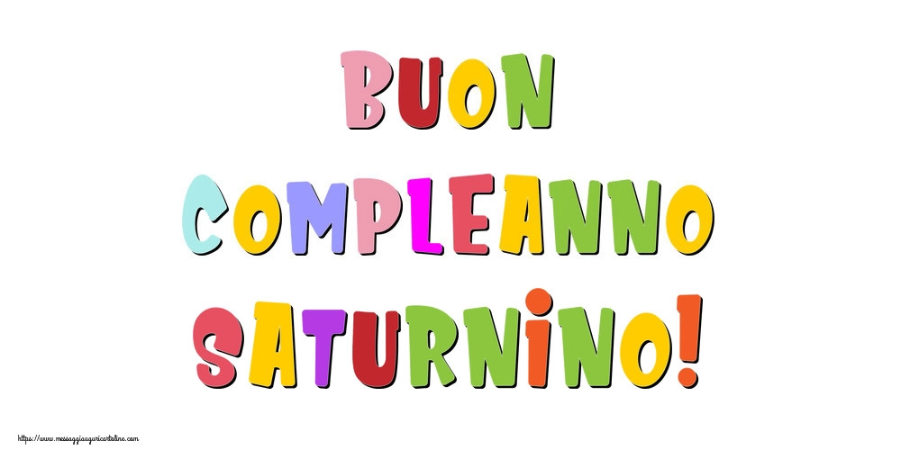 Buon compleanno Saturnino! | Cartolina con messaggio scritto in lettere colorate | Cartoline di compleanno