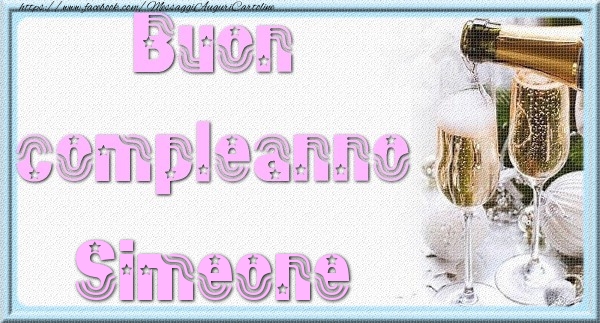 Buon compleanno Simeone | Cartolina con champagne e bicchieri | Cartoline di auguri