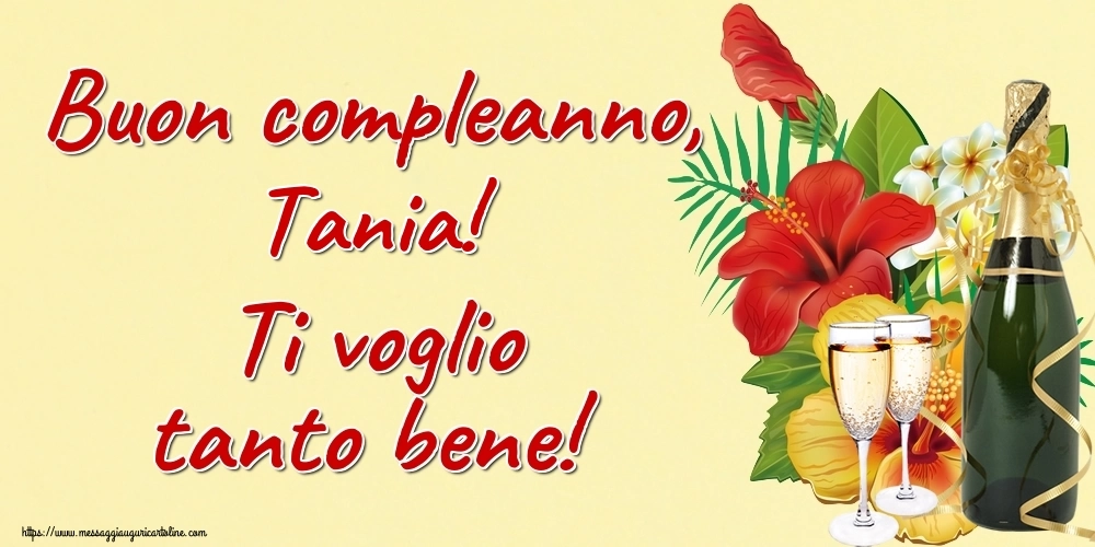Questa cartolina d'auguri personalizzato con champagne e fiori per una donna speciale è decorato con un design festivo e pieno di colore, perfetto per riflettere la gioia e l'allegria di un compleanno. Il nome del destinatario, Tania, è il fulcro di questo biglietto, inciso con eleganza e raffinatezza per farlo sentire davvero speciale nel giorno del suo compleanno. Questo biglietto di auguri con il nome Tania può essere scaricata gratis o inviare tramite Whatsapp, Facebook, Twitter, Pinterest. Immagine di auguri buon compleanno con champagne e fiori per una donna speciale e dimensioni 1000px x 500px.
