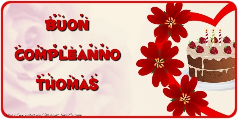 Con questa cartolina con torta e fiori e scritte con i cuori, riuscirai a portare una gioia immensa al festeggiato nel giorno del suo compleanno. È un gesto piccolo, ma pieno d'affetto, che rimarrà per sempre nella sua memoria. Il nome Thomas è il fulcro di questo biglietto, inciso con eleganza e raffinatezza per far sentire davvero speciale il festeggiato nel giorno del suo compleanno. Questo biglietto di auguri di compleanno con il nome Thomas può essere scaricata gratis o inviare tramite Whatsapp, Facebook, Twitter, Pinterest. Immagine di buon compleanno con torta e fiori e scritte con i cuori e dimensioni 800px x 400px.