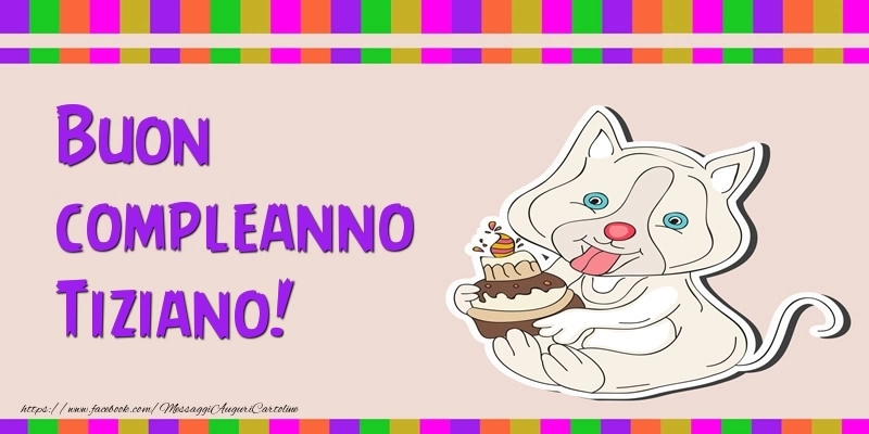 Con questa cartolina con gatto con torta, riuscirai a portare una gioia immensa al festeggiato nel giorno del suo compleanno. È un gesto piccolo, ma pieno d'affetto, che rimarrà per sempre nella sua memoria. Il nome Tiziano è il fulcro di questo biglietto, inciso con eleganza e raffinatezza per far sentire davvero speciale il festeggiato nel giorno del suo compleanno. Questo biglietto di auguri di compleanno con il nome Tiziano può essere scaricata gratis o inviare tramite Whatsapp, Facebook, Twitter, Pinterest. Immagine di buon compleanno con gatto con torta e dimensioni 800px x 400px.