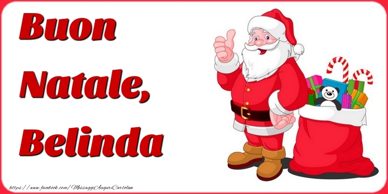 Buon Natale, Belinda | Cartolina con Babbo Natale con i regali per i bambini | Cartoline di natale