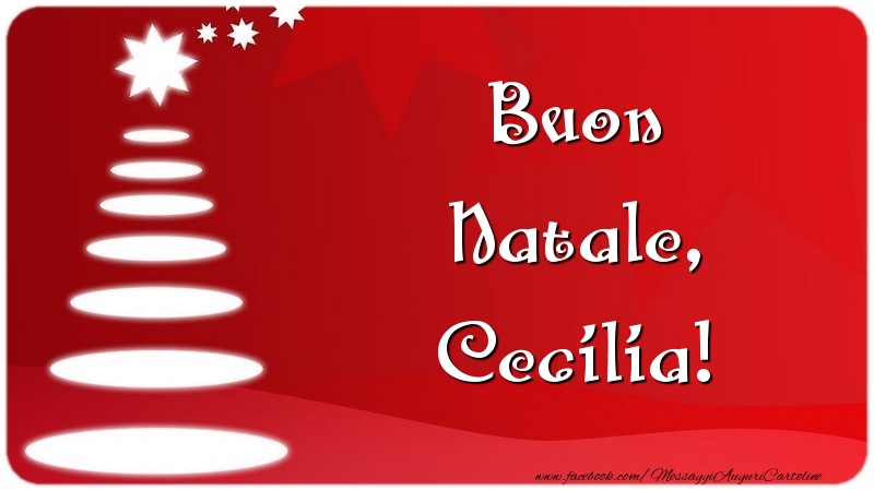 Buon Natale, Cecilia | Cartolina con Albero di Natale astratto su sfondo rosso | Cartoline di natale