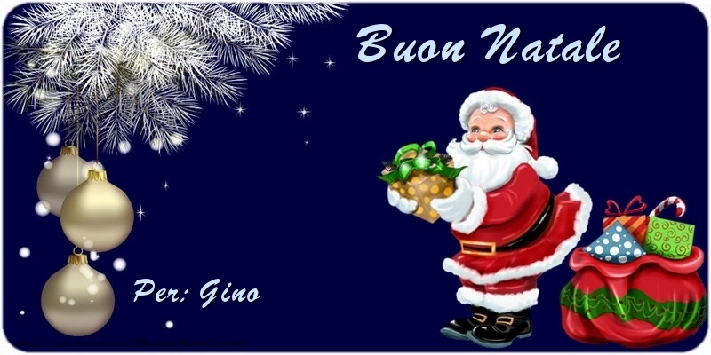 Buon Natale Gino | Cartolina con Albero, Babbo e Palle di Natale con regalo | Cartoline di natale