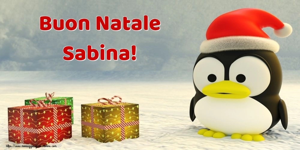 La cartolina di Natale con pinguino divertente con cappello natalizio e regali è stata creata con cura per trasmettere lo spirito natalizio e il fascino di questo periodo magico. Con un design festoso, questo biglietto con il nome Sabina è il regalo perfetto per inviare i migliori auguri di Natale alle persone care. Questo biglietto di auguri di Natale con nome Sabina può essere scaricata gratis o inviare tramite Whatsapp, Facebook, Twitter, Pinterest. Immagine di Natale con pinguino divertente con cappello natalizio e regali e dimensioni 1000px x 500px.
