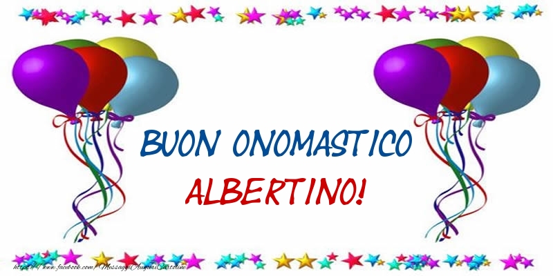 Buon Onomastico Albertino! | Cartolina con palloncini e stelle | Cartoline di onomastico