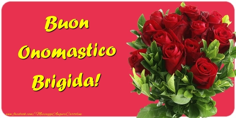 Scopri questa cartolina con bouquet di rose rosse su sfondo rosso unica e personalizzata per la festa dell'onomastico e preparati a condividere un momento di gioia e felicità con il destinatario. Che tu stia inviando il messaggio a distanza o desideri sorprendere la persona amata, questo biglietto di auguri con il nome Brigida renderà la festa dell'onomastico davvero speciale e memorabile. Questo biglietto di auguri di onomastico con nome Brigida può essere scaricata gratis o inviare tramite Whatsapp, Facebook, Twitter, Pinterest. Immagine di buon onomastico con bouquet di rose rosse su sfondo rosso e dimensioni 800px x 400px.