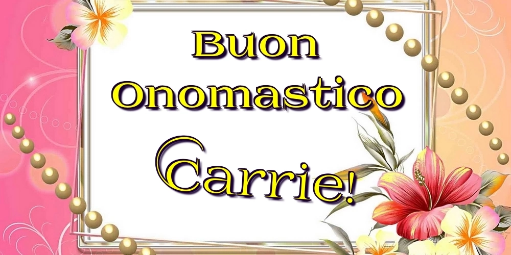 Scopri questa cartolina con composizione floreale unica e personalizzata per la festa dell'onomastico e preparati a condividere un momento di gioia e felicità con il destinatario. Che tu stia inviando il messaggio a distanza o desideri sorprendere la persona amata, questo biglietto di auguri con il nome Carrie renderà la festa dell'onomastico davvero speciale e memorabile. Questo biglietto di auguri di onomastico con nome Carrie può essere scaricata gratis o inviare tramite Whatsapp, Facebook, Twitter, Pinterest. Immagine di buon onomastico con composizione floreale e dimensioni 1000px x 500px.