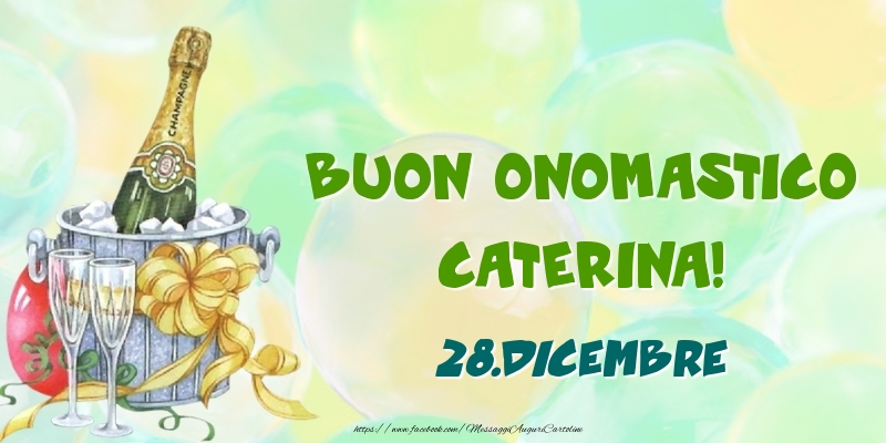 Buon Onomastico, Caterina! 28.Dicembre | Cartolina con champagne su uno sfondo con palloncini | Cartoline di onomastico
