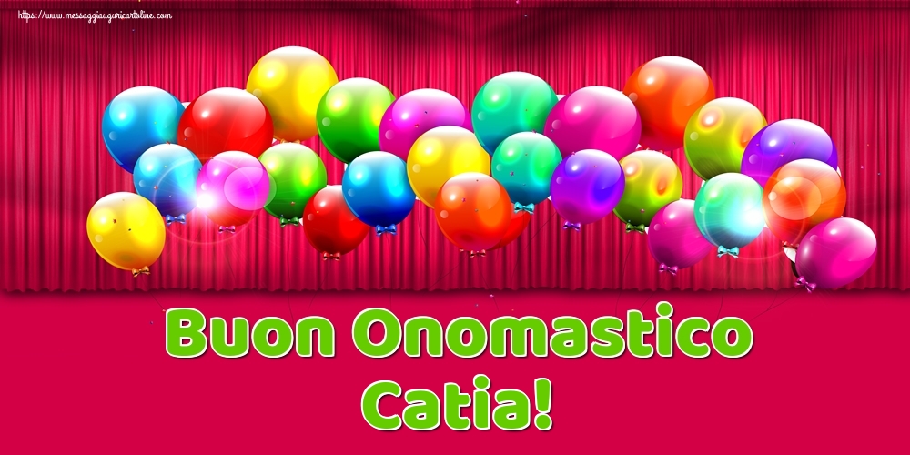 Buon Onomastico Catia! | Cartolina con palloncini colorati | Cartoline di onomastico