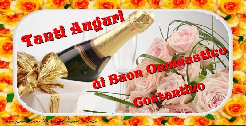 Scopri questa cartolina con champagne e rose unica e personalizzata per la festa dell'onomastico e preparati a condividere un momento di gioia e felicità con il destinatario. Che tu stia inviando il messaggio a distanza o desideri sorprendere la persona amata, questo biglietto di auguri con il nome Costantino renderà la festa dell'onomastico davvero speciale e memorabile. Questo biglietto di auguri di onomastico con nome Costantino può essere scaricata gratis o inviare tramite Whatsapp, Facebook, Twitter, Pinterest. Immagine di buon onomastico con champagne e rose e dimensioni 800px x 410px.