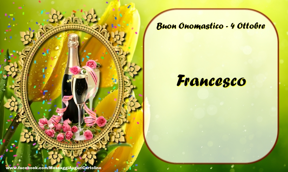 Buon Onomastico, Francesco! 4 Ottobre | Cartolina con champagne e rose | Cartoline di onomastico