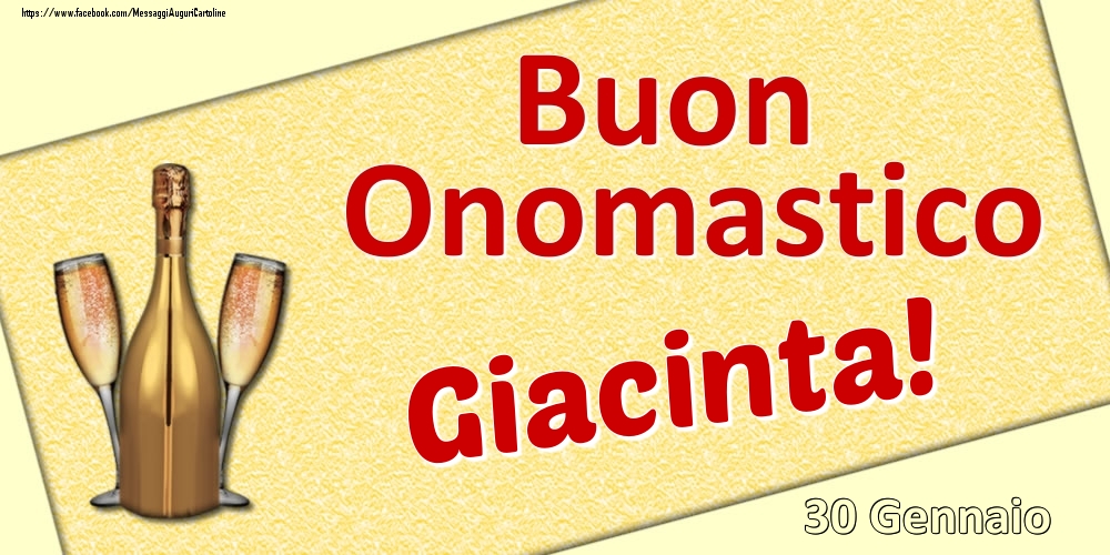 Buon Onomastico Giacinta! - 30 Gennaio | Cartolina con disegno di champagne con bicchieri | Cartoline di onomastico