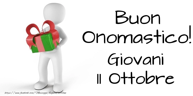 Buon Onomastico  Giovani! 11 Ottobre | Cartolina con omino con i regali | Cartoline di onomastico