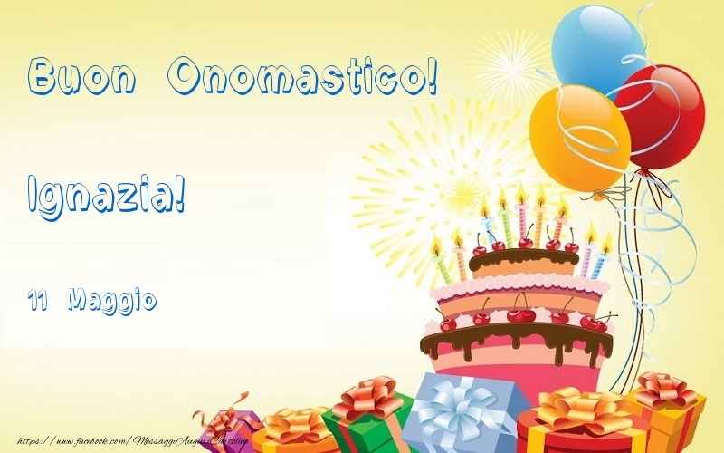 Buon Onomastico  Ignazia! 11 Maggio | Cartolina con palloncini & torta | Cartoline di onomastico
