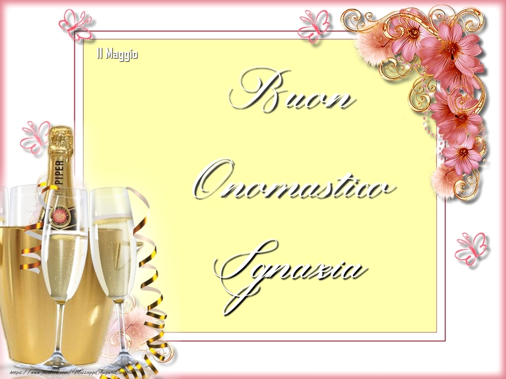 Buon Onomastico, Ignazia! 11 Maggio | Cartolina con champagne e fiori | Cartoline di onomastico