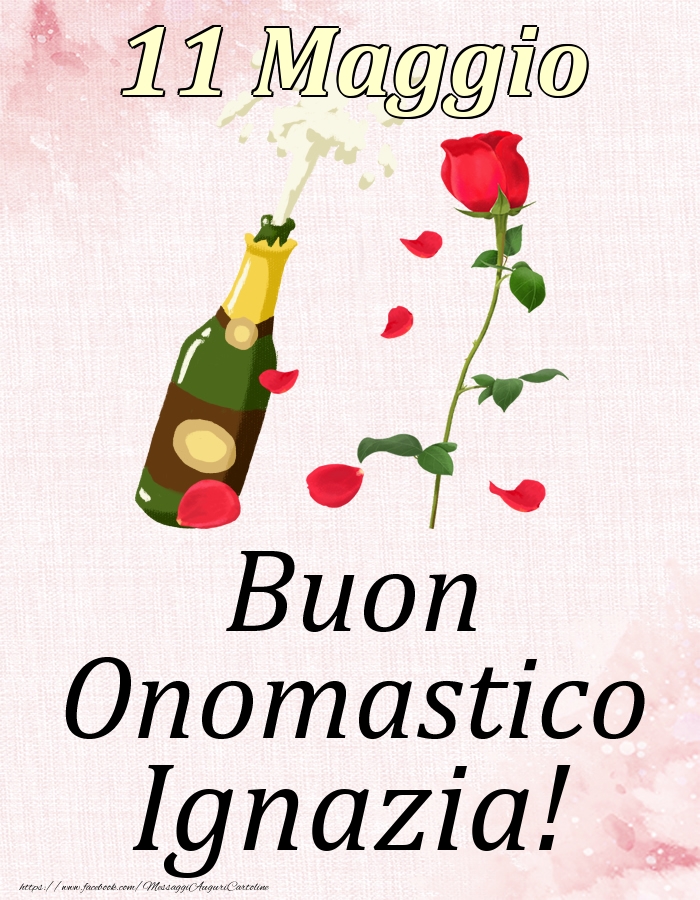 Buon Onomastico Ignazia! - 11 Maggio | Cartolina con disegno con champagne e rosa | Cartoline di onomastico