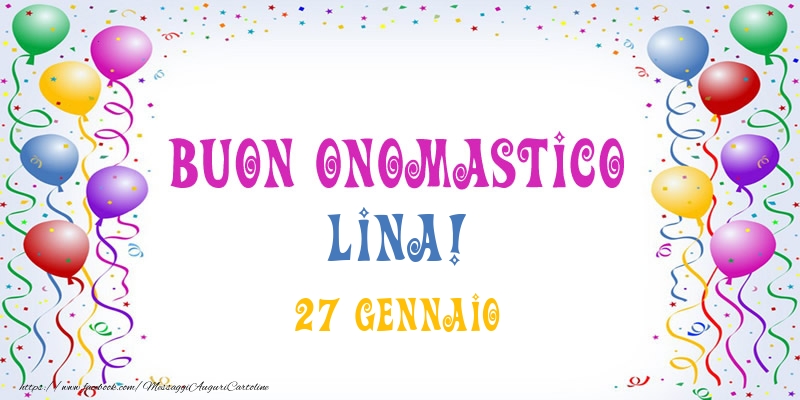 Buon onomastico Lina! 27 Gennaio | Cartolina con palloncini | Cartoline di onomastico