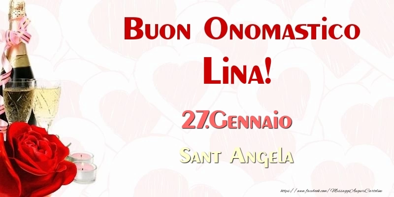 Scopri questa cartolina con rosa rossa e champagne unica e personalizzata per la festa dell'onomastico e preparati a condividere un momento di gioia e felicità con il destinatario. Che tu stia inviando il messaggio a distanza o desideri sorprendere la persona amata, questo biglietto di auguri con il nome Lina renderà la festa dell'onomastico davvero speciale e memorabile. Questo biglietto di auguri di onomastico con nome Lina può essere scaricata gratis o inviare tramite Whatsapp, Facebook, Twitter, Pinterest. Immagine di buon onomastico con rosa rossa e champagne e dimensioni 800px x 400px.