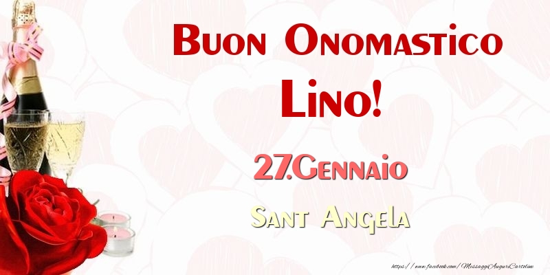Buon Onomastico Lino! 27.Gennaio Sant Angela | Cartolina con rosa rossa e champagne | Cartoline di onomastico