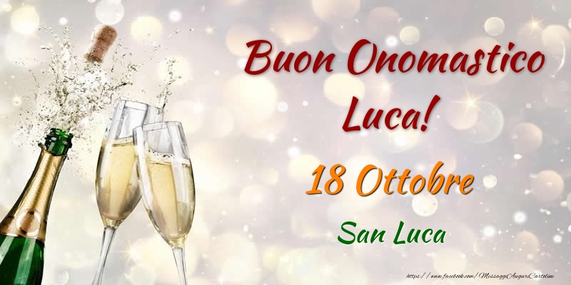 Buon Onomastico Luca! 18 Ottobre San Luca | Cartolina con champagne che si apre | Cartoline di onomastico