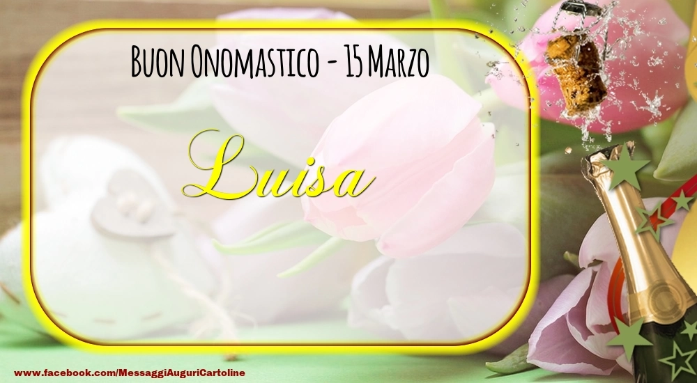 Scopri questa cartolina con champagne con tulipani e cuori sullo sfondo unica e personalizzata per la festa dell'onomastico e preparati a condividere un momento di gioia e felicità con il destinatario. Che tu stia inviando il messaggio a distanza o desideri sorprendere la persona amata, questo biglietto di auguri con il nome Luisa renderà la festa dell'onomastico davvero speciale e memorabile. Questo biglietto di auguri di onomastico con nome Luisa può essere scaricata gratis o inviare tramite Whatsapp, Facebook, Twitter, Pinterest. Immagine di buon onomastico con champagne con tulipani e cuori sullo sfondo e dimensioni 1000px x 550px.