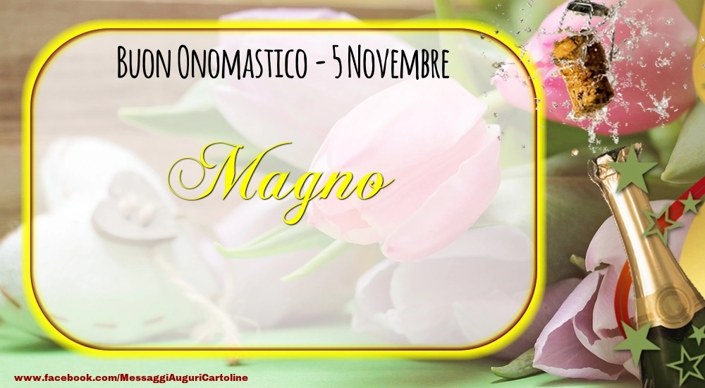 Scopri questa cartolina con champagne con tulipani e cuori sullo sfondo unica e personalizzata per la festa dell'onomastico e preparati a condividere un momento di gioia e felicità con il destinatario. Che tu stia inviando il messaggio a distanza o desideri sorprendere la persona amata, questo biglietto di auguri con il nome Magno renderà la festa dell'onomastico davvero speciale e memorabile. Questo biglietto di auguri di onomastico con nome Magno può essere scaricata gratis o inviare tramite Whatsapp, Facebook, Twitter, Pinterest. Immagine di buon onomastico con champagne con tulipani e cuori sullo sfondo e dimensioni 1000px x 550px.