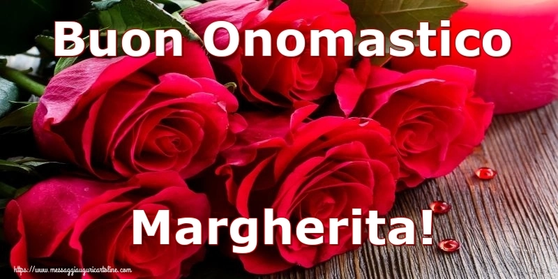 Scopri questa cartolina con rose rosse per donne unica e personalizzata per la festa dell'onomastico e preparati a condividere un momento di gioia e felicità con il destinatario. Che tu stia inviando il messaggio a distanza o desideri sorprendere la persona amata, questo biglietto di auguri con il nome Margherita renderà la festa dell'onomastico davvero speciale e memorabile. Questo biglietto di auguri di onomastico con nome Margherita può essere scaricata gratis o inviare tramite Whatsapp, Facebook, Twitter, Pinterest. Immagine di buon onomastico con rose rosse per donne e dimensioni 800px x 400px.