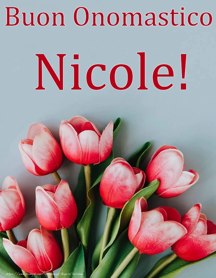 Buon Onomastico Nicole! | Cartolina con tulipani rossi e bianchi | Cartoline di onomastico