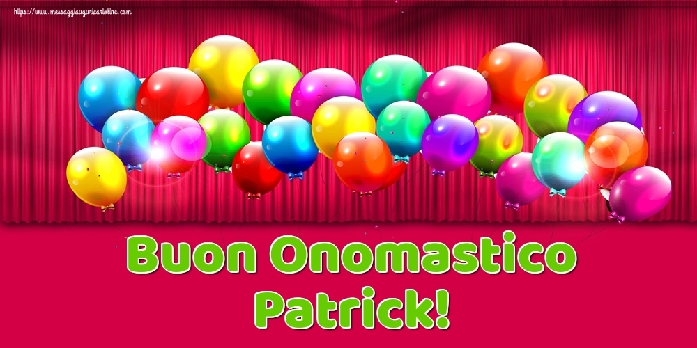 Buon Onomastico Patrick! | Cartolina con palloncini colorati | Cartoline di onomastico