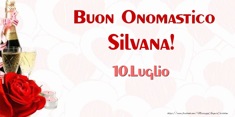 Buon Onomastico Silvana! 10.Luglio | Cartolina con rosa rossa e champagne | Cartoline di onomastico
