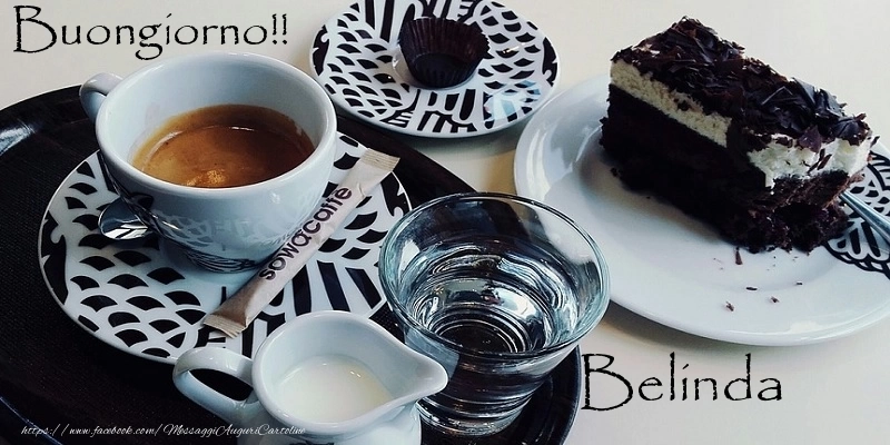 Buongiorno!! Belinda | Cartolina con caffè e dolci sul tavolo | Cartoline di buongiorno