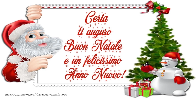 Ceria ti auguro Buon Natale e un felicissimo Anno Nuovo! | Cartolina con Albero di Natale, Babbo natale e regalo | Cartoline di natale